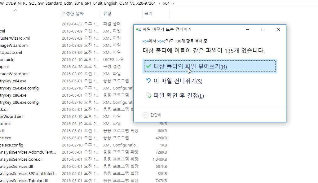 5) RTM 설치 미디어 폴더 안에 있는 x64 폴더를 들어가서 덮어쓰기를 합니다.